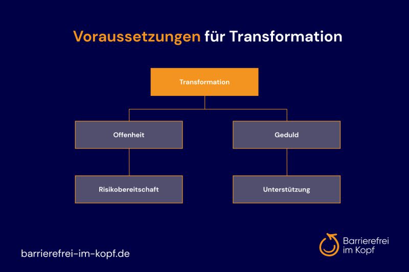 Veränderung ist ein kontinuierlicher Prozess, Transformation geht jedoch über bloße Anpassungen hinaus. Sinn der Transformation ist eine tiefgreifende Verwandlung, ein Überdenken der Grundlagen, um eine völlig neue Form zu erreichen. Transformation bringt mit sich, bestehende Gewohnheiten, Prozesse und Strukturen grundlegend zu verändern. Die größte Herausforderung liegt darin, sich von alten Gewohnheiten zu verabschieden. Für Einzelpersonen, Unternehmen oder Organisationen, die über lange Jahre hinweg Traditionen leben, ist dies eine enorme Herausforderung. Um Erfolg für die Zukunft sichern zu können, wird allerdings Offenheit für Kreativität und Innovationen gebraucht.