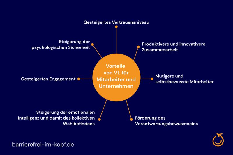 Durch einen VL ermöglichen Sie Ihren Mitarbeitern, Sie als Mensch zu sehen, da sie Ihre verletzliche und damit authentische Seite kennenlernen. So ist es für Ihre Mitarbeiter erheblich leichter, auch mit Ihnen offen zu kommunizieren und ehrlich zu sein. - Produktivere und innovativere Zusammenarbeit